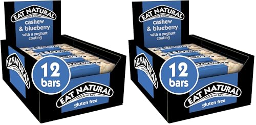 Eat Natural Cashew & Blueberry with a Yoghurt Coating Fruit & Nut Bars 12 x 40g (Pack of 2)