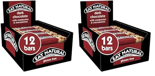 Eat Natural Dark Chocolate with Cranberries & Macadamias Fruit & Nut Bars 12 x 40g (Pack of 2)