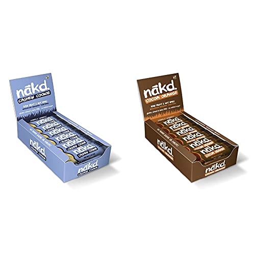 Nakd Cashew Cookie Natural Bars -Fruit & Nut Vegan - Gluten Free - Healthy Snack, 35 g (Pack of 18) & Cocoa Orange Natural Snack Bars - Vegan Bars - Healthy Snack - Gluten Free Bars 35 g (Pack of 18)