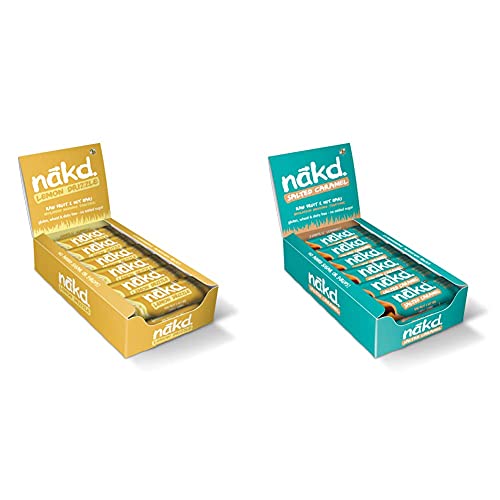Nakd Lemon Drizzle Natural Fruit & Nut Bars - Vegan, 35 g (Pack of 18) & Salted Caramel Natural Snack Bars - Vegan Bars - Healthy Snack - Gluten Free Bars 35 g (Pack of 18)