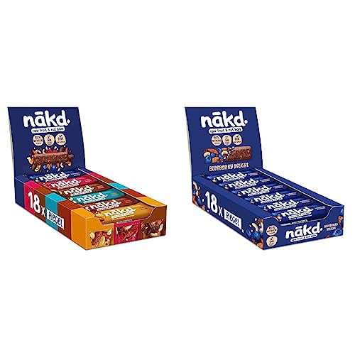 Nakd Mind Blown Fruit & Nut Bar Mixed Case - Vegan Bars, 35 g (Pack of 18 Assorted) & Blueberry Muffin Natural Fruit & Nut Bars - Vegan - Gluten Free - Healthy Snack, 35 g (Pack of 18)
