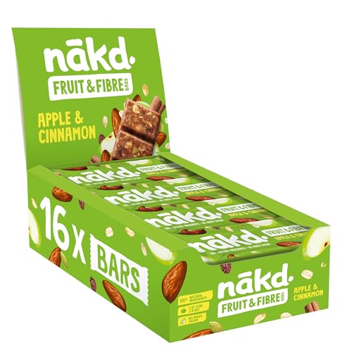 nakd. Fruit & Fibre bars - Apple & Cinnamon - High in fibre - 100% Natural ingredients - No added sugar - Vegan - 16 x 44g bars - 704g