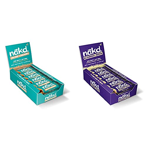 Nakd Salted Caramel Natural Snack Bars - Vegan Bars - Healthy Snack - 35 g (Pack of 18) & Blueberry Muffin Natural Fruit & Nut Bars - Vegan - Gluten Free - Healthy Snack, 35 g (Pack of 18)