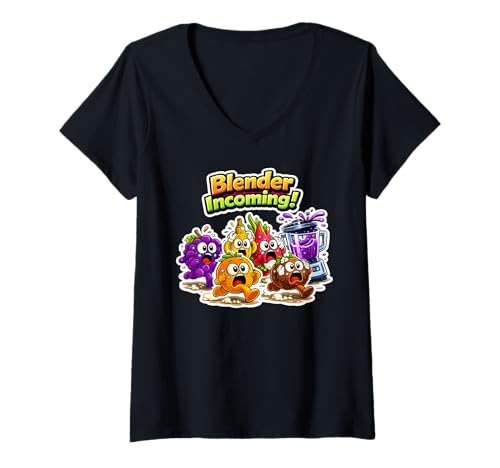 Women's Funny Fruit Panic, Blender Incoming, Humor Smoothie Lover V-Neck T-Shirt