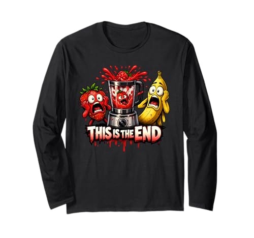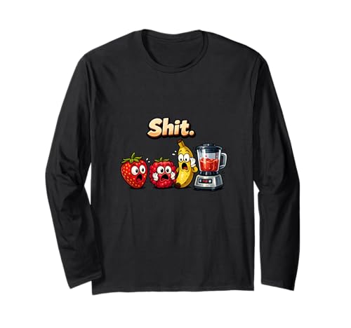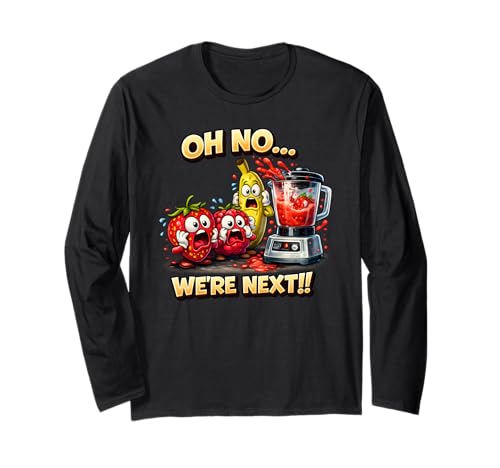 Funny Comic Fruit Panic Blender Design Cartoon Humor Long Sleeve T-Shirt