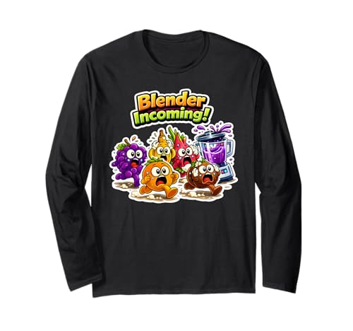 Funny Fruit Panic, Blender Incoming, Humor Smoothie Lover Long Sleeve T-Shirt