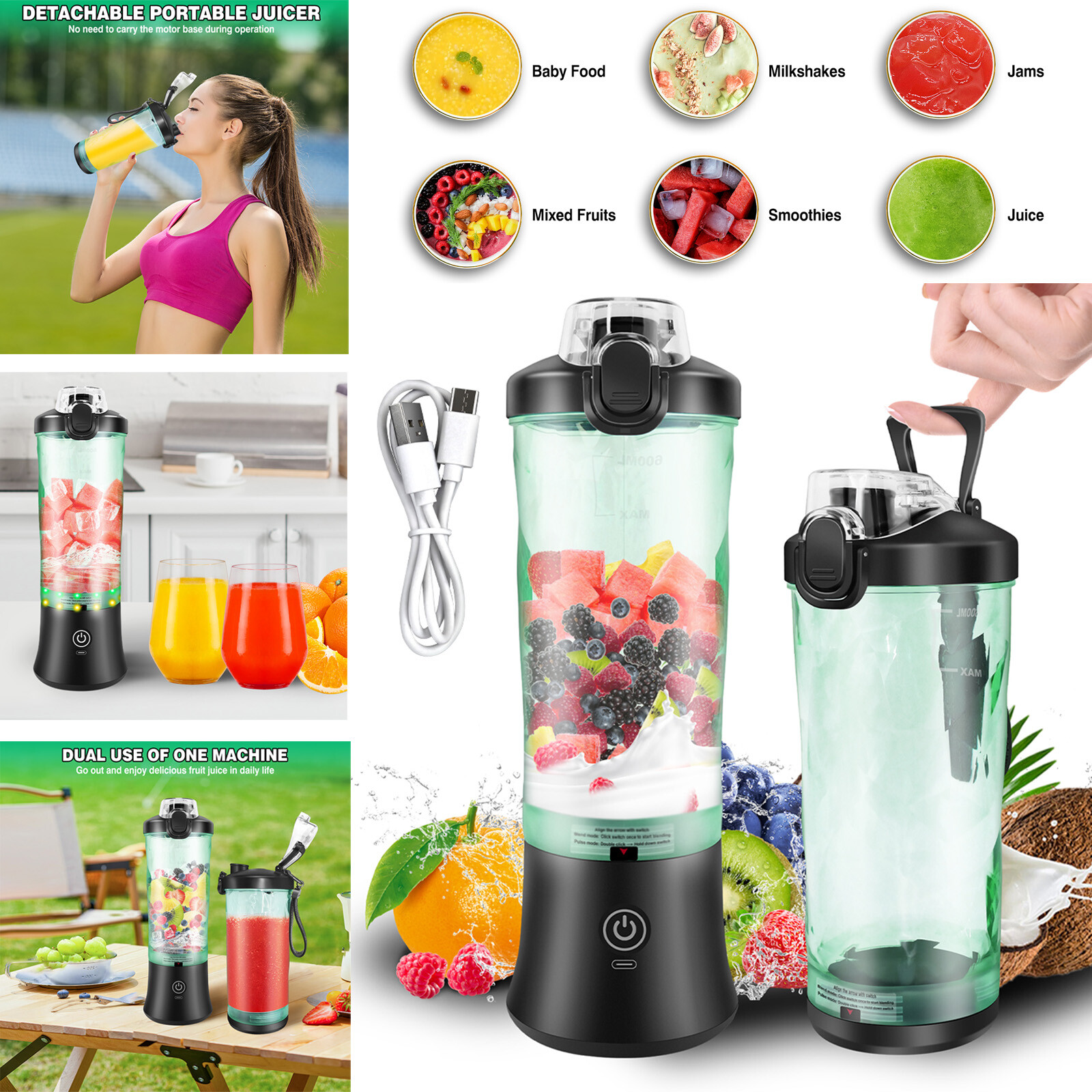 Unbranded Mini USB Rechargeable Portable Fruit Juicer & Blender - 2-in-1 Bottle Juicer, Charge, Blends Juice, Milkshakes, Ice