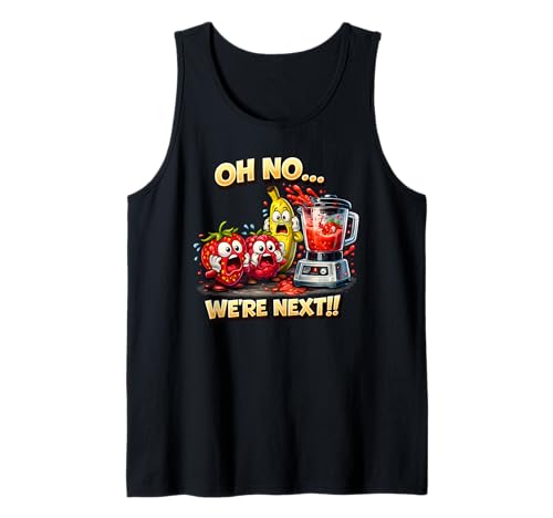 Funny Fruit Panic Blender Cartoon Humor Design Tank Top