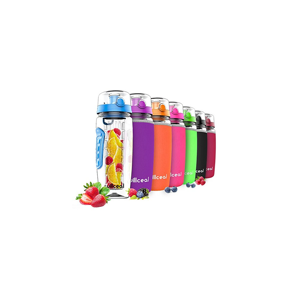 willceal Fruit Infuser Water Bottle 32oz Durable, Large - BPA Free Tritan, Flip Lid, Leak Proof Design - Sports, Camping