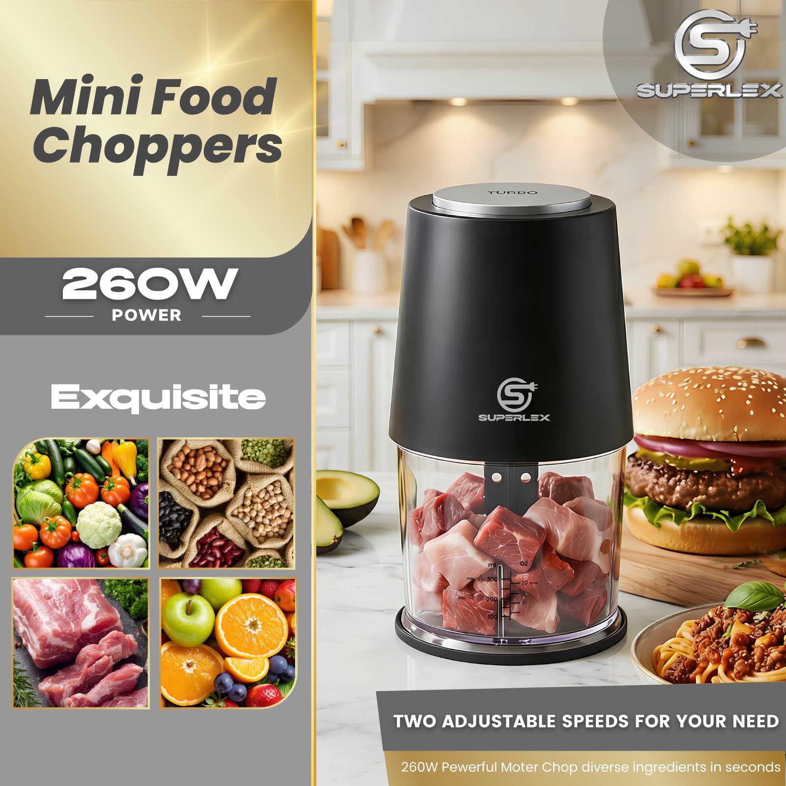 SUPERLEX Food Chopper Electric Processor Fruit & Veg Mixer One Touch Control