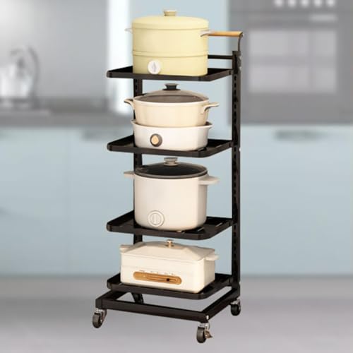 Kitchen trolley,Sliding Kitchen Storage Shelf Black Pantry Rack for Pots & Pans Fruit & Vegetable Storage 4x4 Boards Space-Saving Kitchen Solution