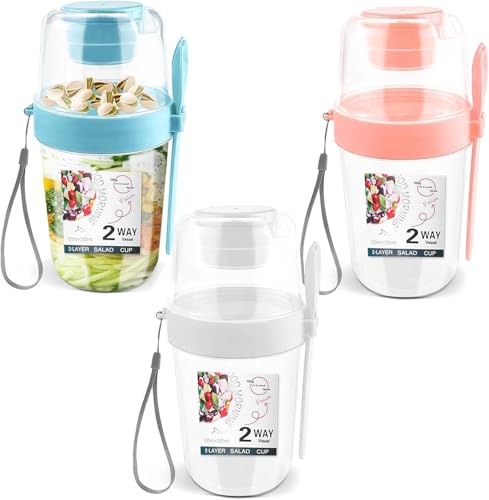 GAOHAN 3 Pcs Yogurt Pots,29.42OZ Reusable Overnight Oats Container with Lid Spoon, 870ML Breakfast Pot Muesli Cup for Salads Fruit Cereal Milk Porridge