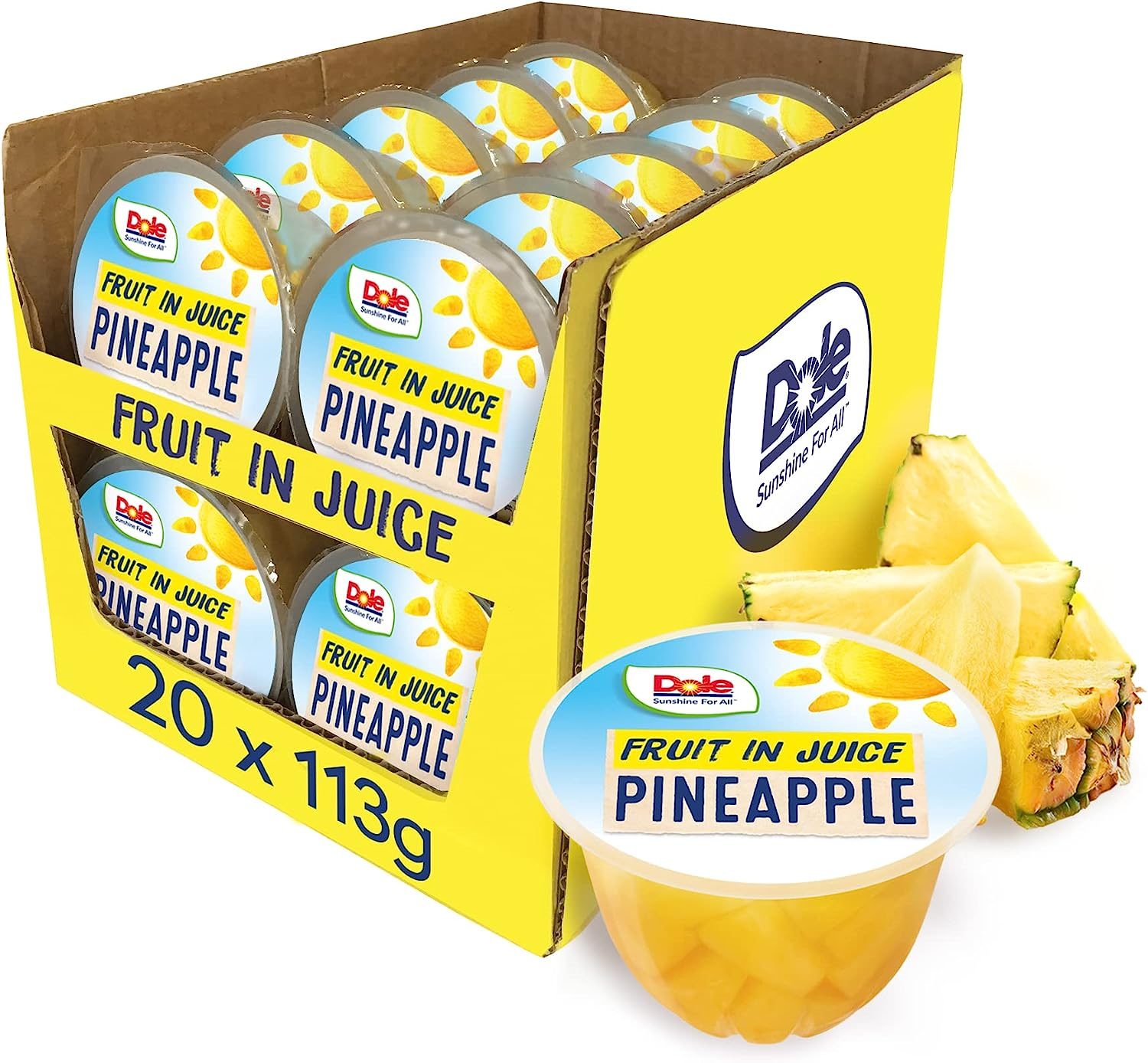 Dole Pineapple in Juice Fruit Pots 20 X 113G, Fresh Fruit Chunks, Healthy Snack,