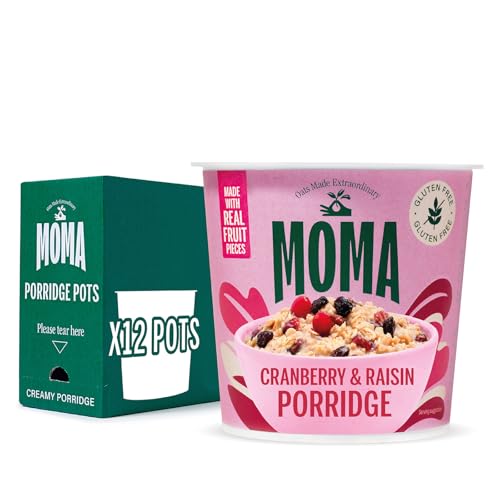 MOMA Instant Porridge Pots CRANBERRY & RAISIN - Pack of 12 x 70g - Breakfast Jumbo Oat with Real Fruit - Gluten Free, High in Fibre, Source of Protein & Rich in Vitamin B6 - Made in UK
