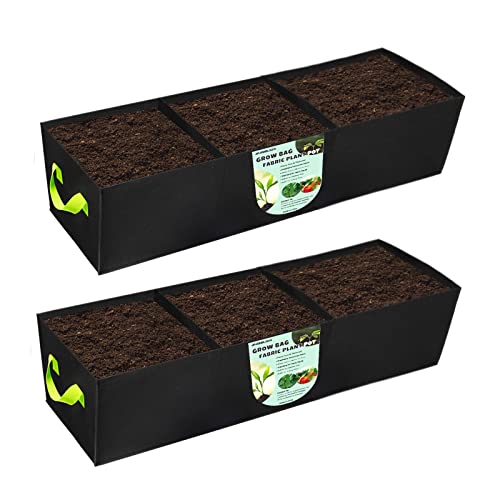 ANGELIOX 2Pcs Grow Bags, 3-Grids Rectangle Grow Bag,14 Gallon Thickened 400G Fabric Garden Bed, Nonwoven Square Flower Planter Containers for Flowers,Vegetable,Fruit, Growing Pots with Handles