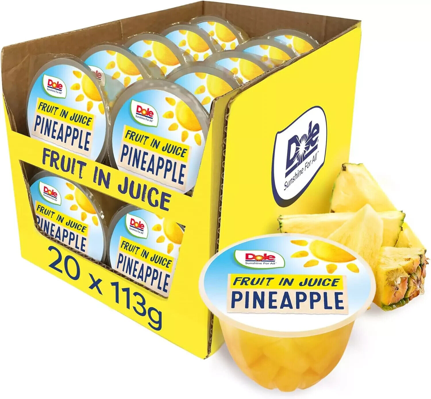 Dole Pineapple in Juice Fruit Pots 20 x 113g, Fresh Chunks, Healthy...