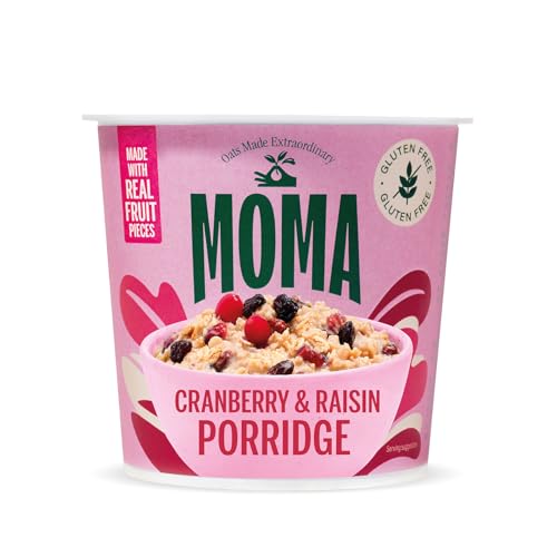 MOMA Instant Porridge Pots CRANBERRY & RAISIN - 70g Pot - Breakfast Jumbo Oat with Real Fruit - Gluten Free, High in Fibre, Source of Protein & Rich in Vitamin B6 - Made in UK