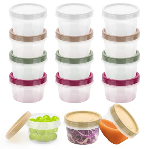 Starvortex 16pcs Small Food Containers with Lids, 200ML Reusable Snack Pots, Leak-proof Screw Top Plastic Containers, Small Tubs with Lids for Lunch Yogurt Fruit Microwave & Freezer Safe(4 Colors)