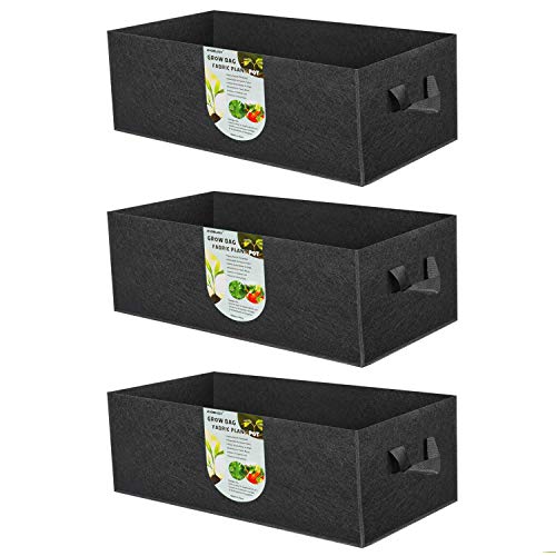 ANGELIOX 3-Pack Grow Bags, 10 Gallon Heavy Duty 300G Thickened Nonwoven Fabric Raised Garden Bed Square Flower Planter Containers for Carrot Onion,Flowers,Fruit/Growing Pots with Handles(60x30x20cm)