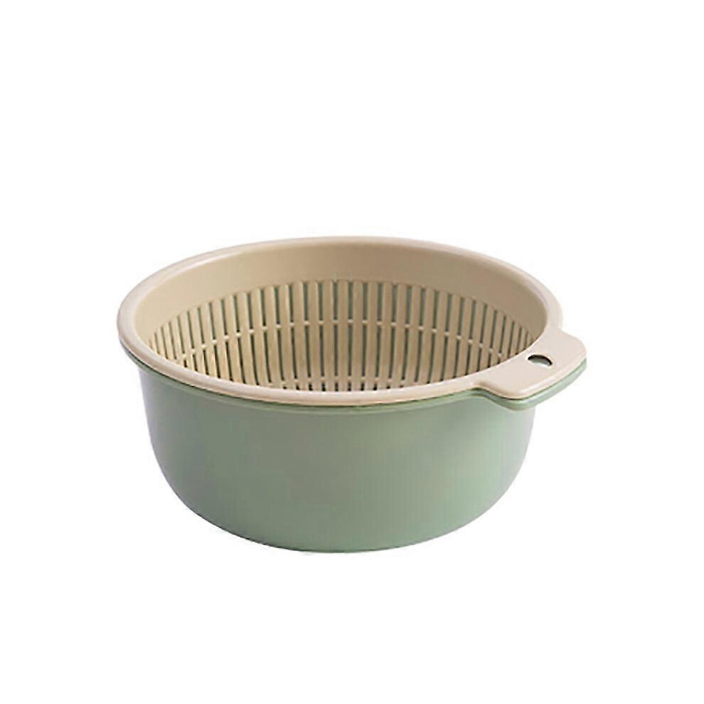 Double Layer Plastic Fruit Washing Basket With Strainer Two Tier Vegetables And Fruits Drain Basket Avocado Green