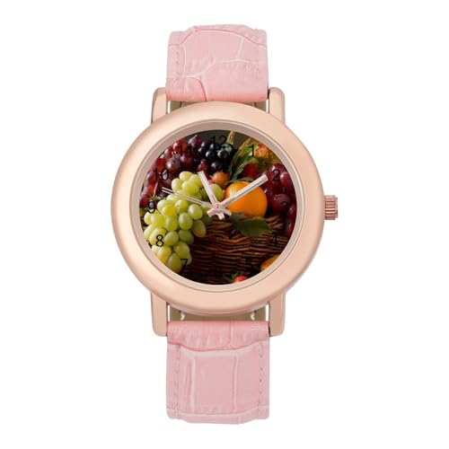 Grapes Basket Fruits Wrist Watches for Women Men Ladies Stainless Steel Quartz Watch with PU Strap