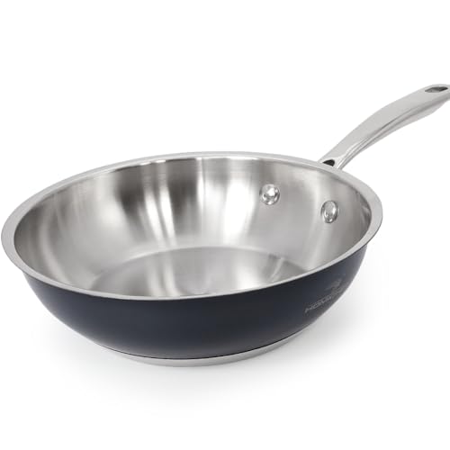 HOMICHEF Navy Gray Nickel Free 20 CM Fry Pan Stainless Steel (No Toxic Non Coating) - Matte Polished Skillet with Flat Bottom - Induction Omelette and Egg Pan