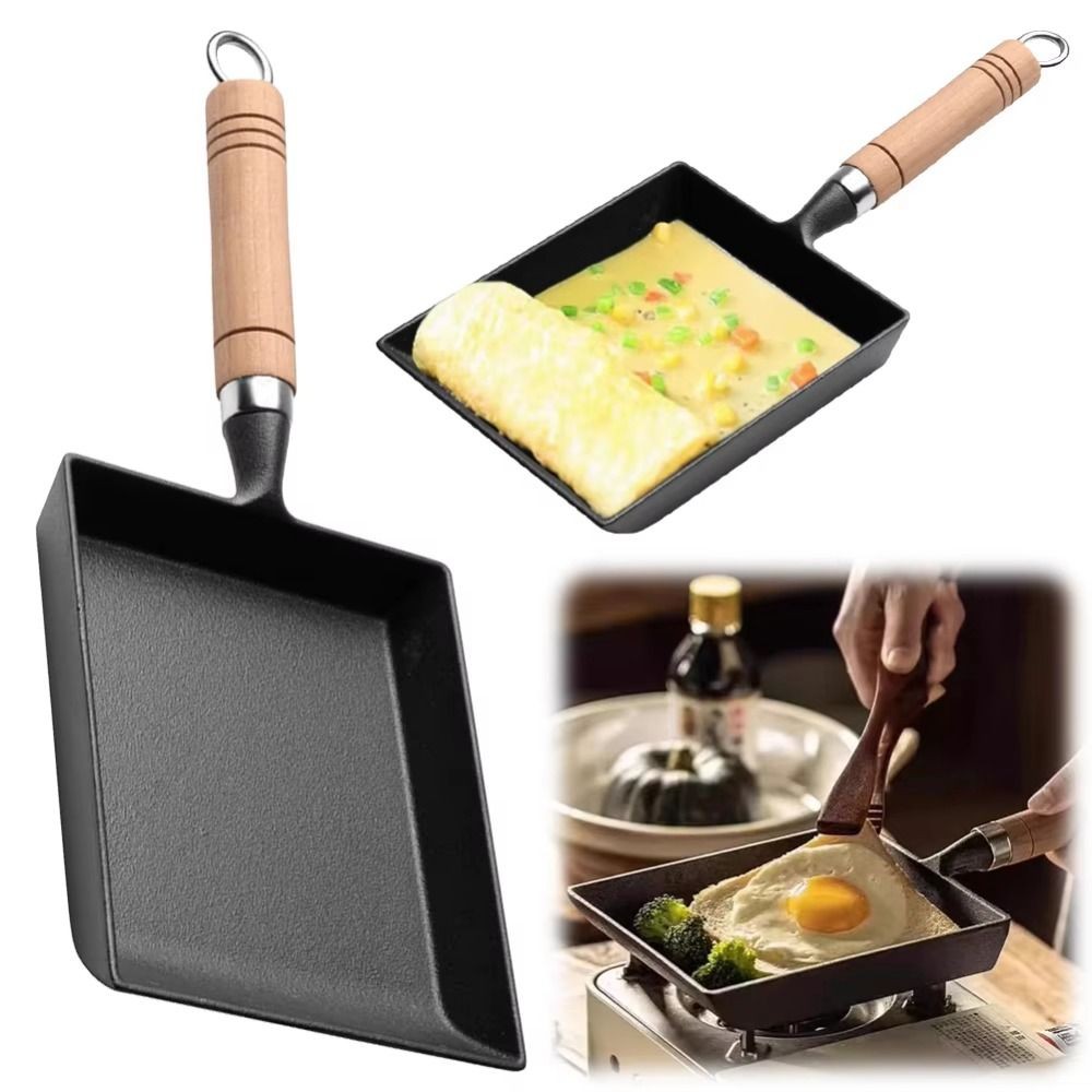 Omelette Pan Cast Iron Pan Frying Tamagoyaki Omelette Black Non Stick Pan Fry Egg Pancake Kitchen Pot Cover Gas Cooker For The Kitchen