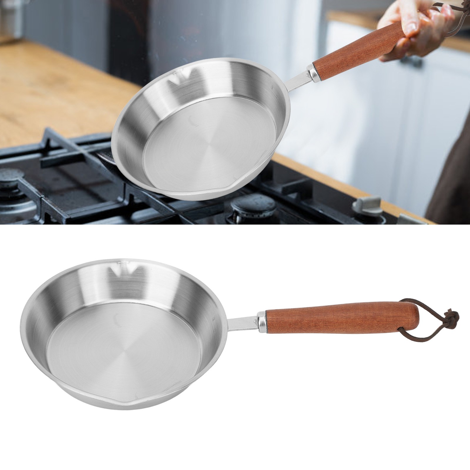 (16CM) Stainless Steel Frying Pan Non Stick Egg Pan Fry Pan With Wooden
