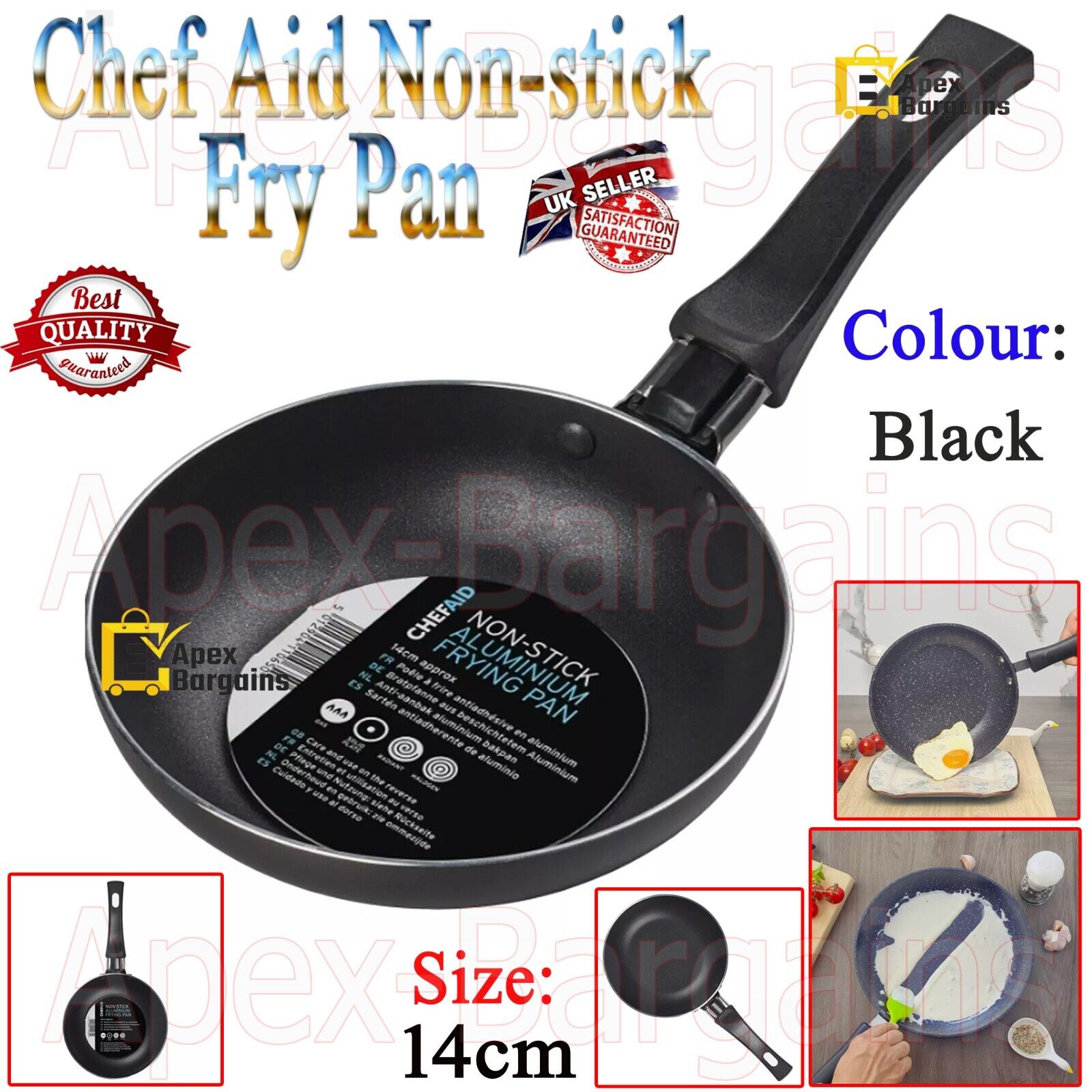 14cm Chef Aid Mini One Egg Frying Fry Pan Round Small Aluminium Black Non Stick