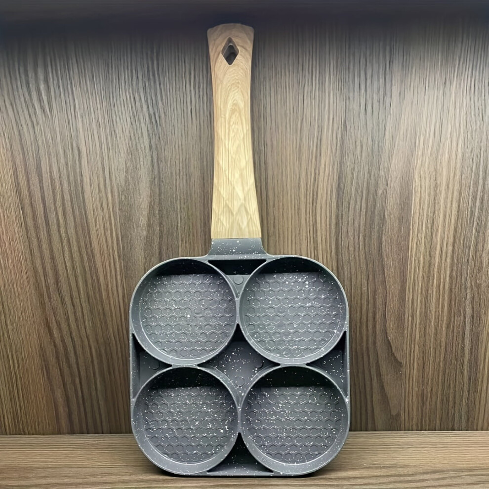 1pc Non-Stick Fry Pan for Egg, 4/2 Cups Aluminum Alloy Pancake Pan, Compatible with Gas Stove & Induction, with Wooden Handle