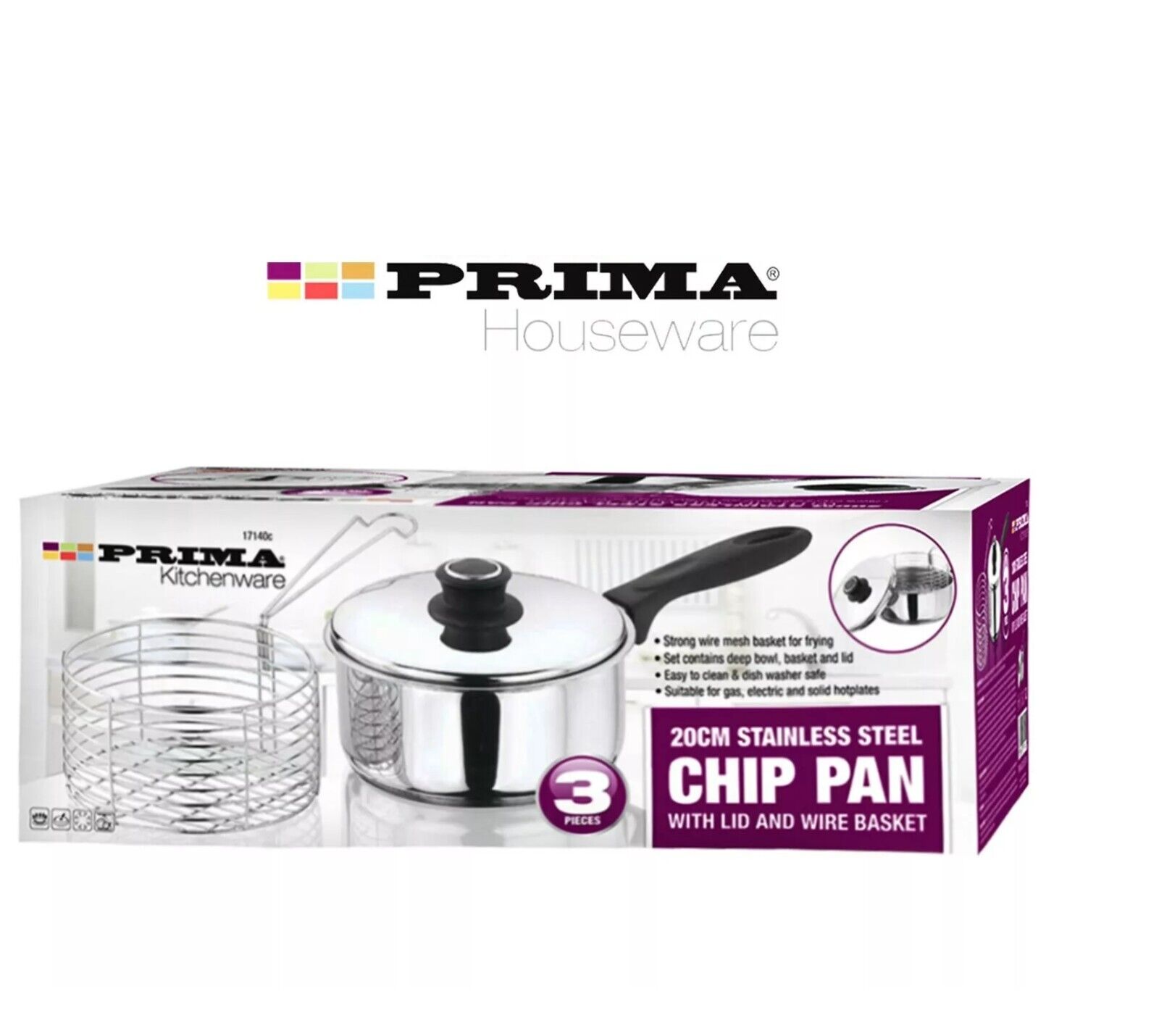 3 In 1 PRIMA Deep Fryer Cooking Set Chip Fry Pan Pot Steamer Basket Glass Lid UK