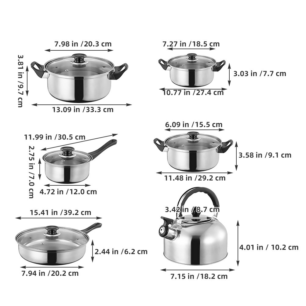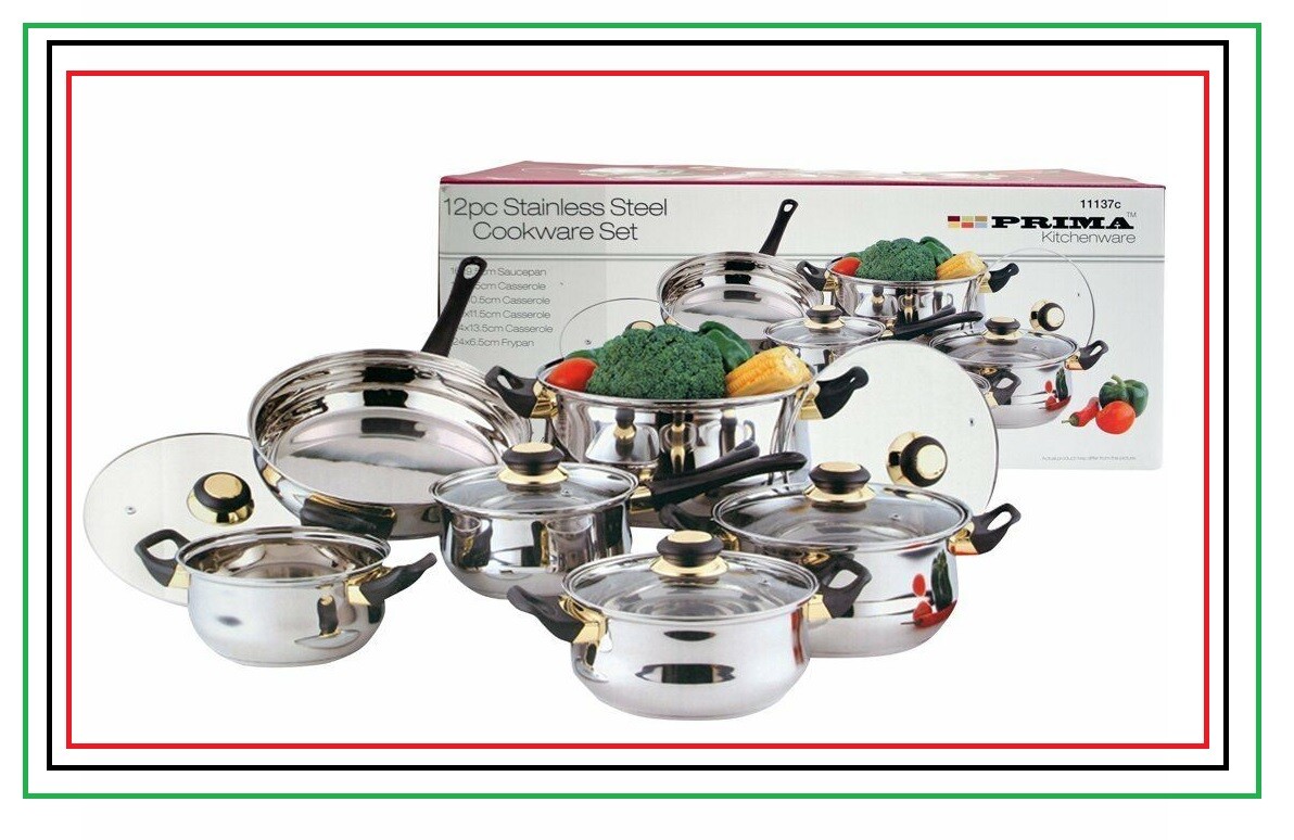 12 x Stainless Steel Cookware Set Saucepan Pot KITCHEN Cook Frypan UK FREE P&P