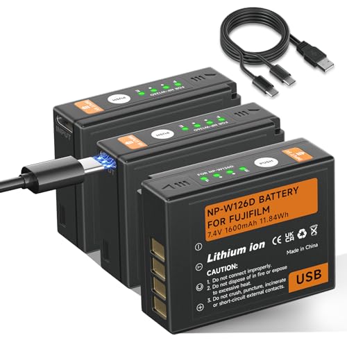 Mspalocell 3 Pack NP-W126 USB-C Battery 1600mAh, NP-W126S battery with type C, for Fuji X-T100,X-T200,X100F,X100V,X-S10,X-A5,X-A10,X-E3,X-E4,X-Pro2,X-Pro3,X-T1,X-T2,X-T3,X-T10,X-T20,X-T30,X-T30 II