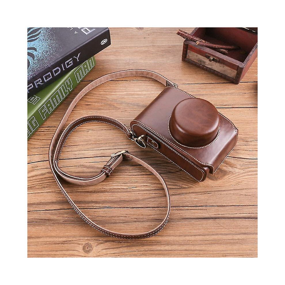MUZIRI KINOKOO PU Leather Case for Fuji X100V X100VI X100 Series/Canon G5X G1X G1X2 G1X3/Pana. LX100 LX100M2 GF1-3/ Sony RX1 RX1R RX1R2/ Olympus Pen-F EP7 EPL - with Shoulder Strap - Coffee