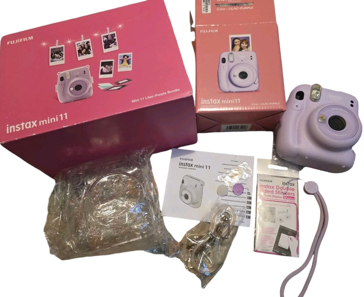 Explore our collection of Fujifilm Instax Mini 11 bundles. These Polaroid cameras come with an built-in flash, automatic exposure control, and a 12.7 aperture. They use Instax Mini film measuring 54x86 mm for instant prints. Available in a variety of colours including black, white, silver, grey, brown, blue, gold, green, pink, and purple. Enhance your photography experience with our range of accessories such as the Fujifilm Instax Mini 11 Carry Case, a compact case available in multiple colours and features a shoulder strap for easy carrying. Print your favourite moments on the go with the Fujifilm Instax Mini Link, a portable photo printer with Bluetooth and wireless connectivity. Complete your collection with the Fujifilm Instax Mini 11 Photo Album and the Fujifilm Instax Mini Link 2 - Splatoon 3 Bundle, available in white and pink. Compare prices and find the perfect Fujifilm Instax Mini 11 bundle for you.