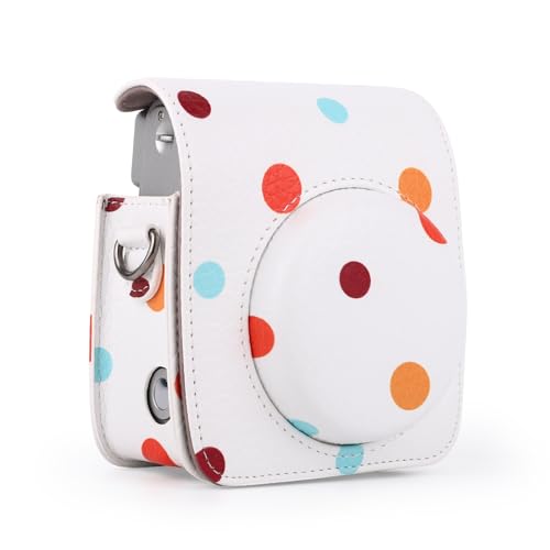 Frankmate Protective Case Fit for Fujifilm Instax Mini 90 Camera, Polka Dots PU Leather Carrying Bag with Pocket and Adjustable Strap