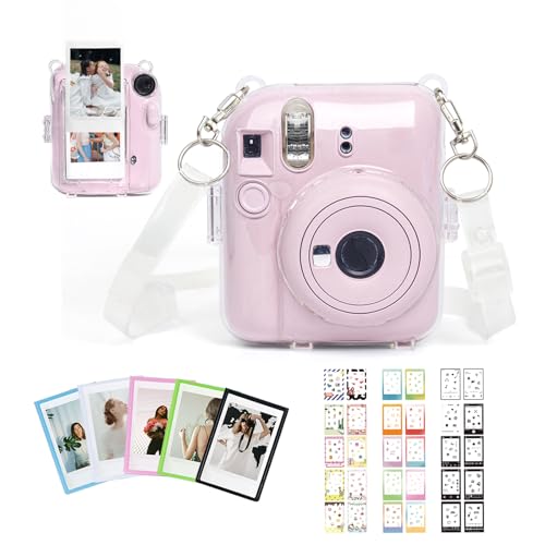 Clear Case Compatible with Fujifilm Instax Mini 12 Instant Camera with Mini Magnetic Photo Frames And 30pcs Lovely Mini Film Border Stickers (Case+Frames+Films Border Sticker)