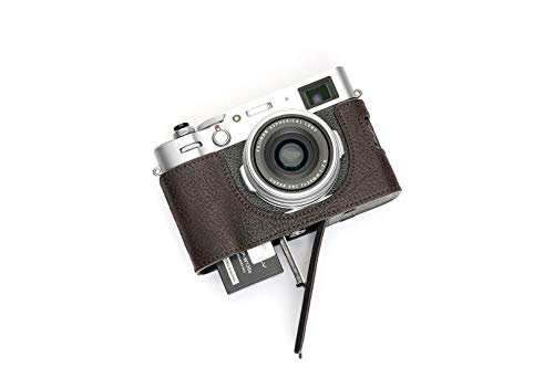 Bottom Opening Version for Fujifilm x100v Protective PU Leather Half Camera Case Bag with Tripod Design with Hand Strap Brown