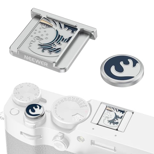 NEEWER X100V X100VI Hot Shoe Hot Shoe Cover and Shutter Caps Set, Cold Shoe Cover with Shutter Release Photography Accessories Compatible with Fujifilm X100V X100VI, Silver, CA110
