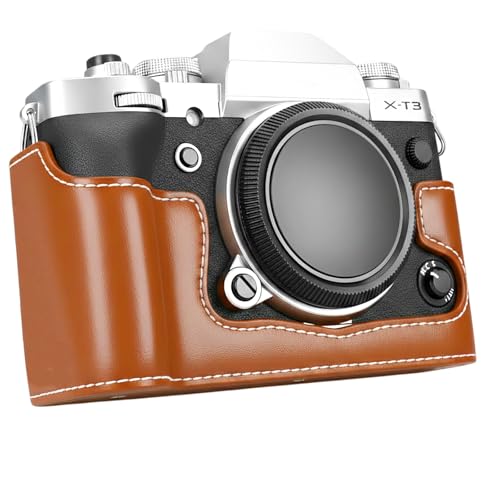 Sagreeny PU Leather Protective Half Case Compatible with Fujifilm X-T3 Camera with Bottom Opening Design (Brown)