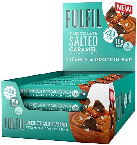 Fulfil Vitamin and Protein Bars (15 x 40g Bars) — Chocolate Salted Caramel Flavour — 15g High Protein, 9 Vitamins, Low Sugar