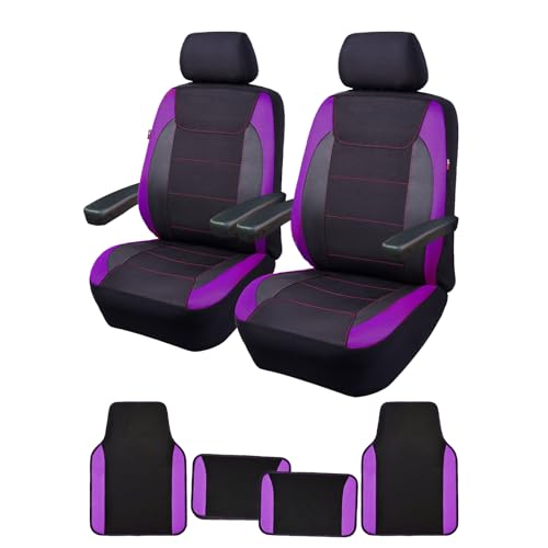Flying Banner Carbon Fiber Mesh Front Car Seat Covers Armrest Compatible and Anti-Slip Car Floor Mats 4 Pieces Full Set, Universal Combo Set for Most Sedans Truck Vans SUVs (Black and Purple)