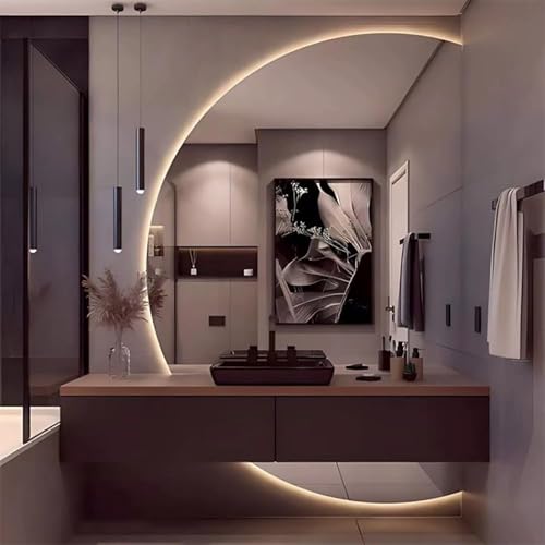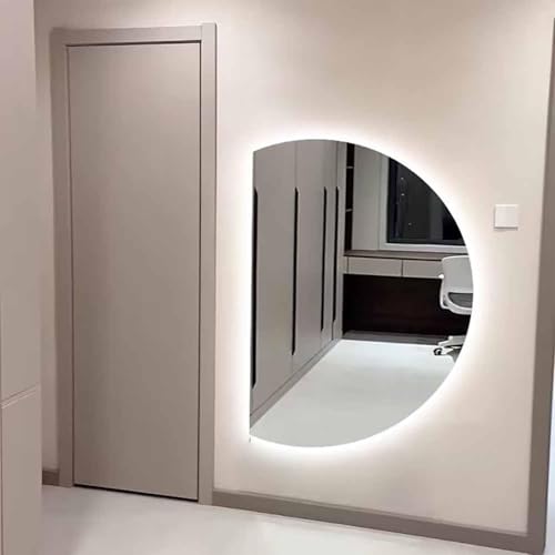 Aenmezen Half-Moon Frameless Backlit Full Length Mirror, LED Smart Makeup Mirror, 3 Colors Dimmable, Anti-Fog Explosion-Proof, for Living Room, Entrances, Bathroom(Right cut,110 * 70cm)