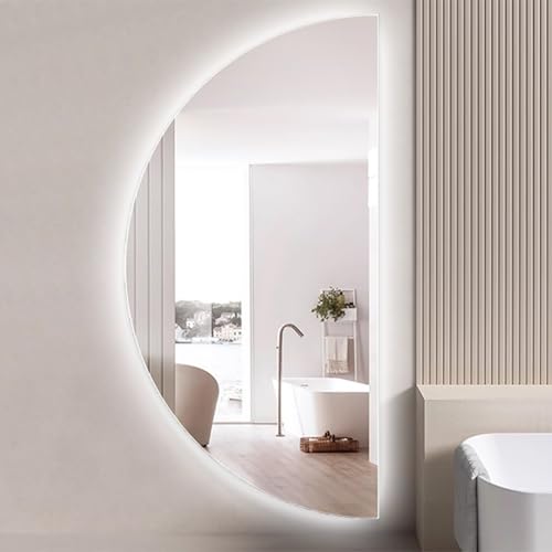 ZYBOWAYL 32x16 inch Half Moon Bathroom LED Smart Mirror Frameless, 40x20 inch Backlit 3-Color Dimmable Hanging Full Length Mirror with Anti-Fog 48x24 inch(Left Cut,120cm/48inch)