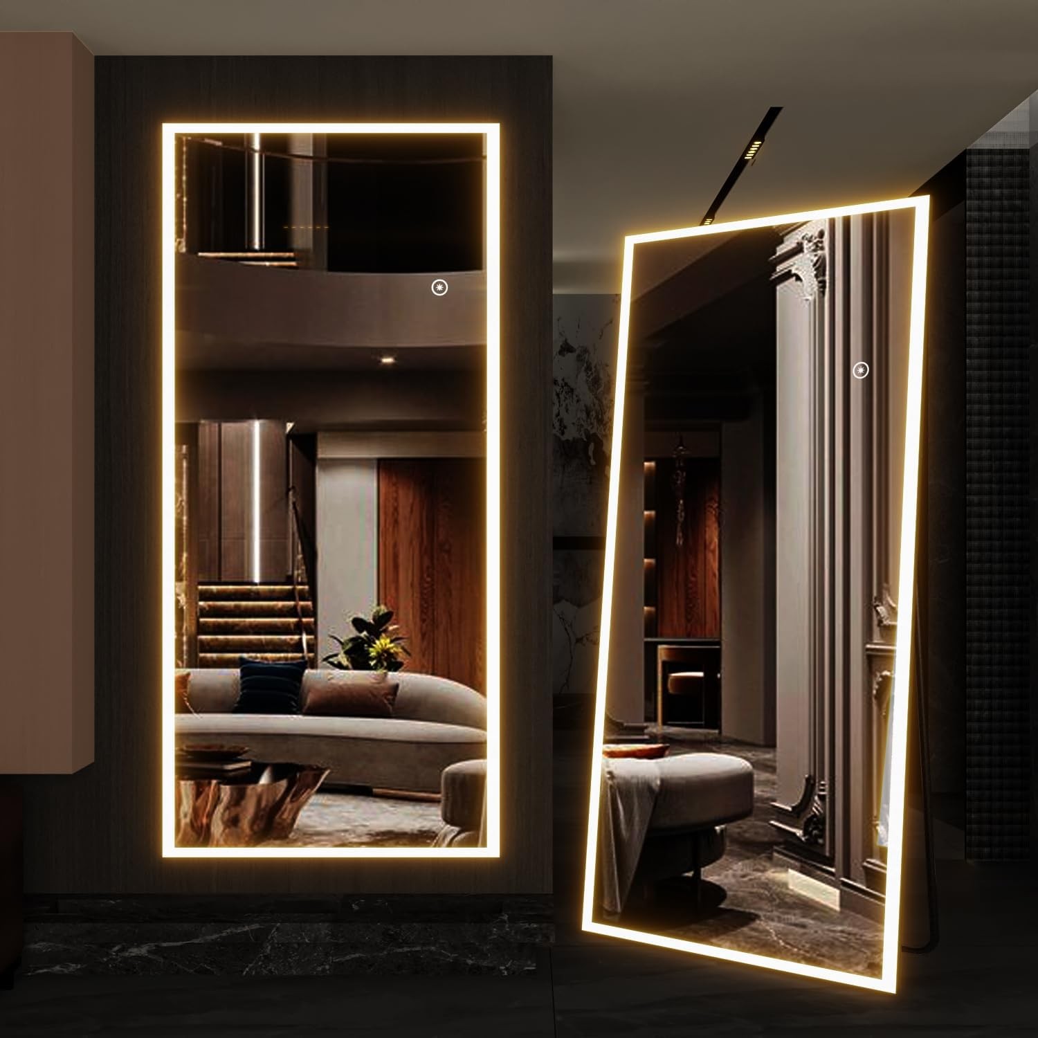 Full Length Mirror with LED Lights, Dimmable Standing, Leaning or Wall Mirror
