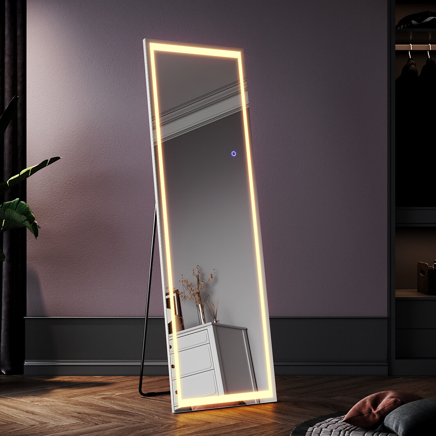 Large Full Length Wall Mirror With LED Lights Floor Standing Modern Furniture