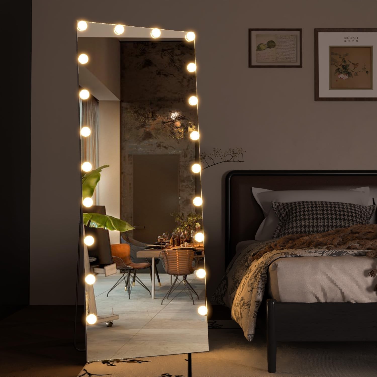 CASSILANDO Full Length Mirror with Lights, 160x50cm Floor Body Hollywood Standi