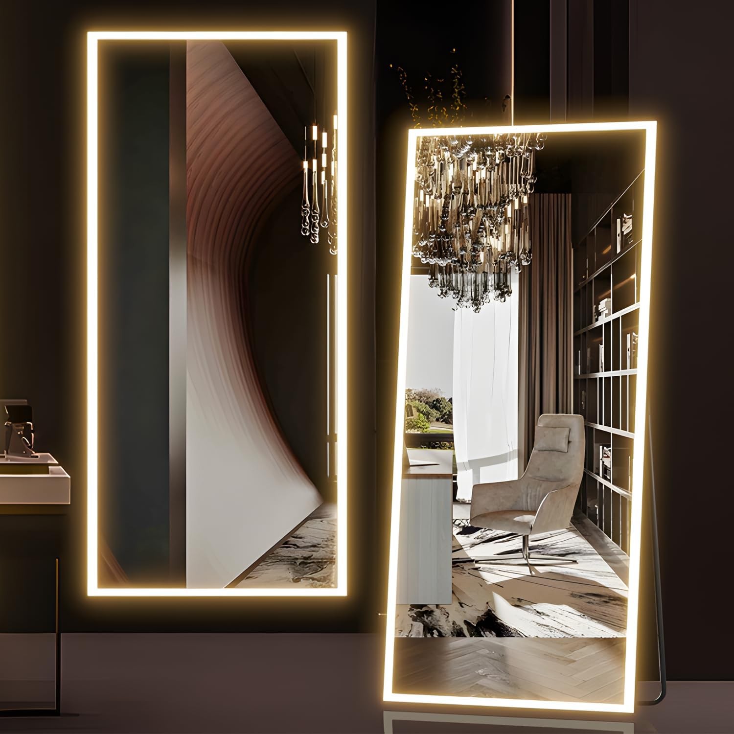 Full Length Mirror with LED Lights, Dimmable Standing, Leaning or Wall Mirror