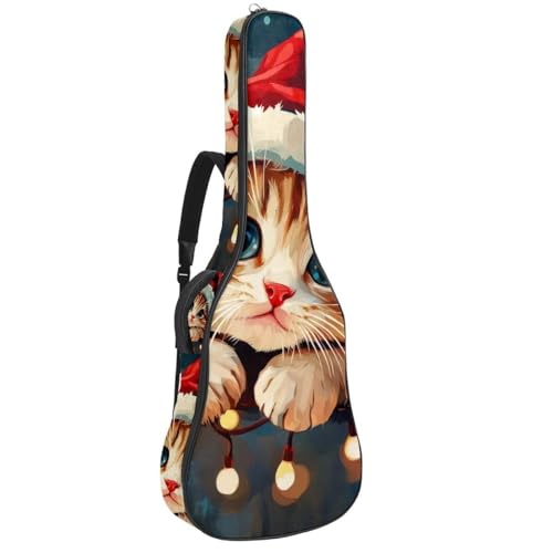 Full Size Guitar Bag, Waterproof Guitar Cover Carry Case for Acoustic Classical Electric Guitars, Cute Christmas Cat with Santa Hat and Lights Garland