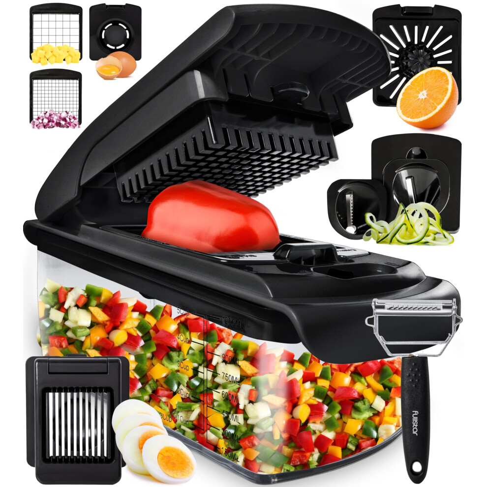 Fullstar Vegetable Chopper & Cutter - Slicer Dicer Spiralizer with Container fo